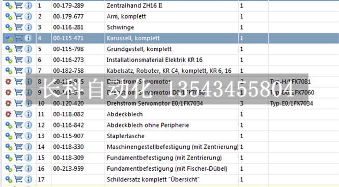 以上為KUKA KR6-2 機器人配件訂貨號,所有型號均可以訂購。